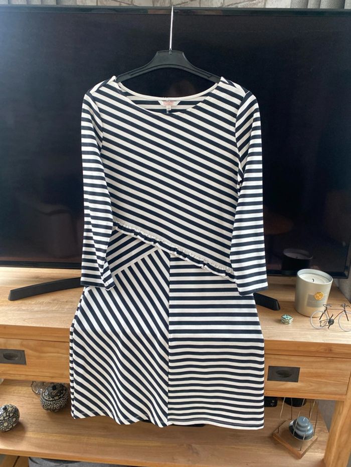 Très chouette robe lignée Parfait état Taille Xl mais petit je dirais un 40 N’hésitez pas à demander les mesures