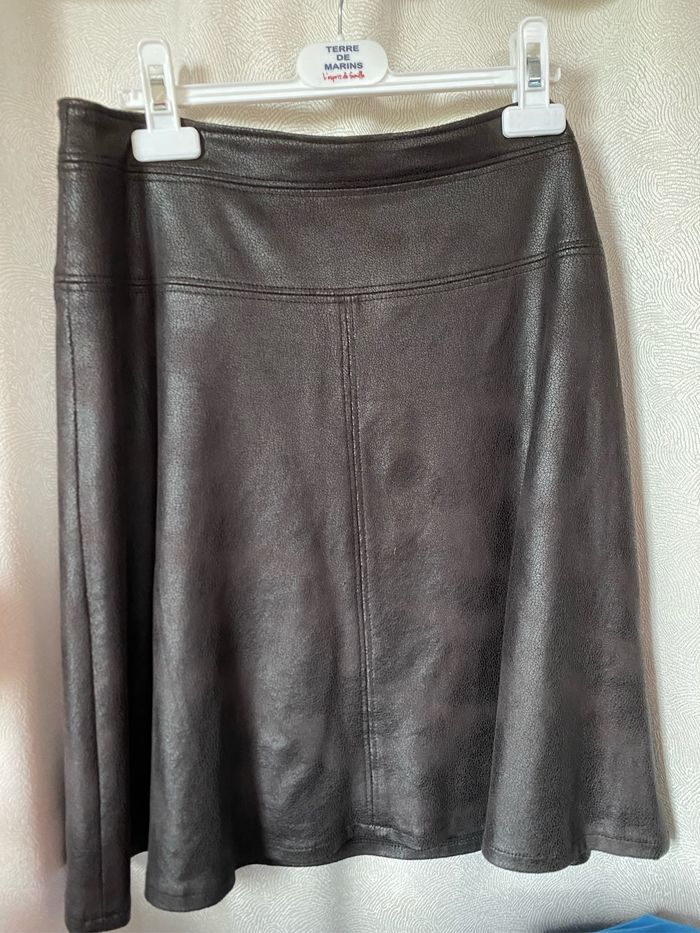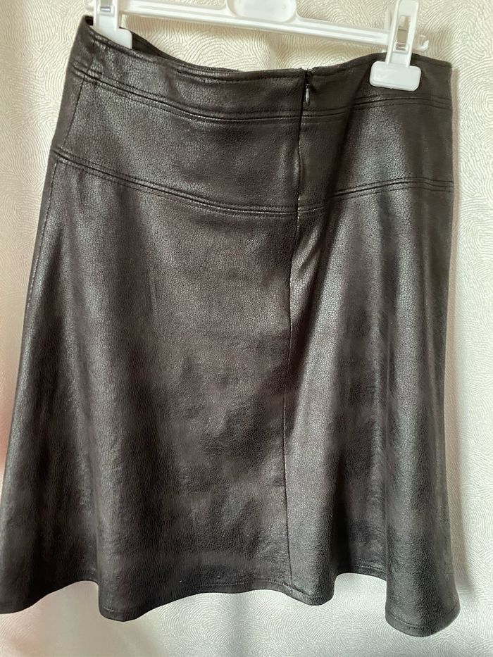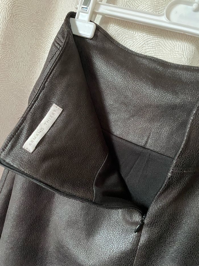 En état neuf, Très belle jupe aspect cuir marron 36 Armand Thiery - photo numéro 7