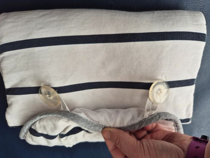 Une partie détachable pour simplifier le lavage Des élastiques sur les côtés pour couches, lingettes..... Défaut au niveau des boutons de fermeture, les élastiques/boutonnières se sont abîmés à la base Me contacter pour un changement de catégorie afin de baisser les frais de port
