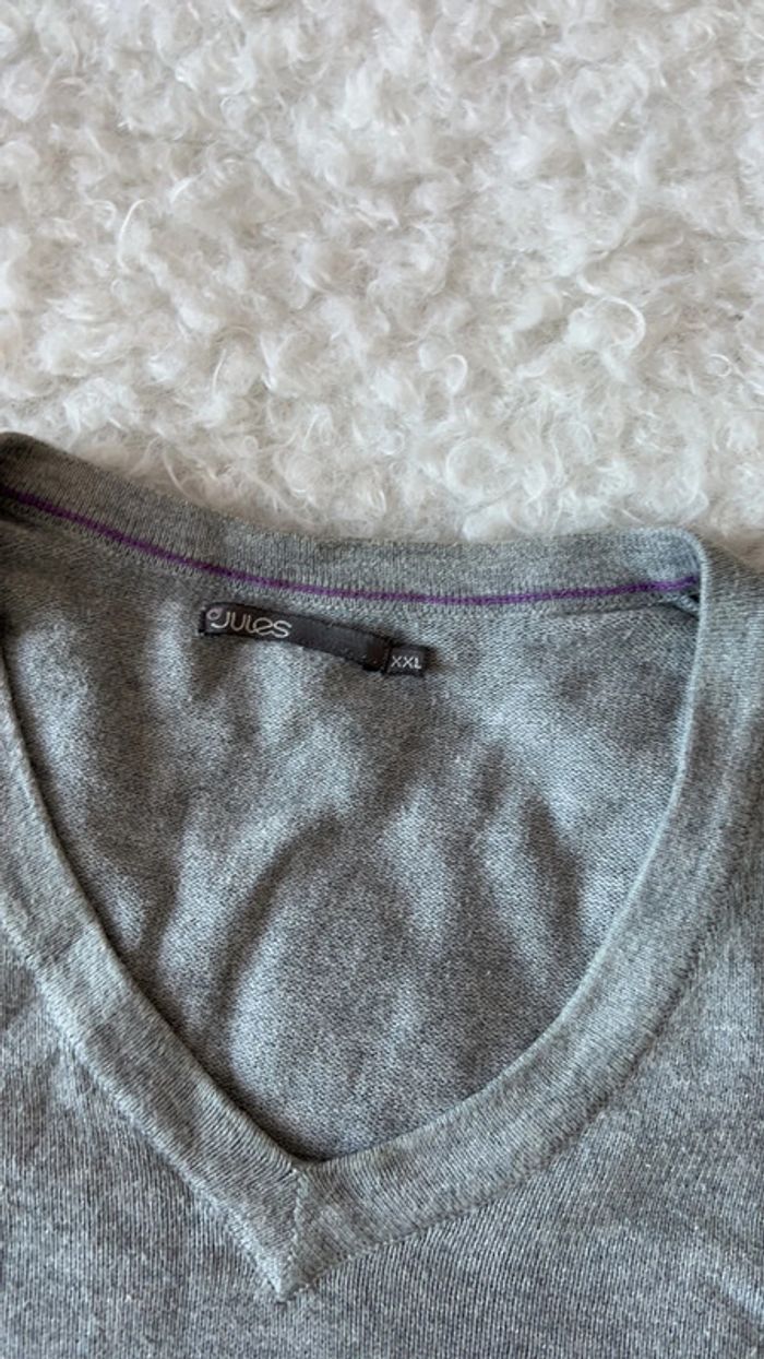 Pull col V Jules gris clair XXL coton - photo numéro 2