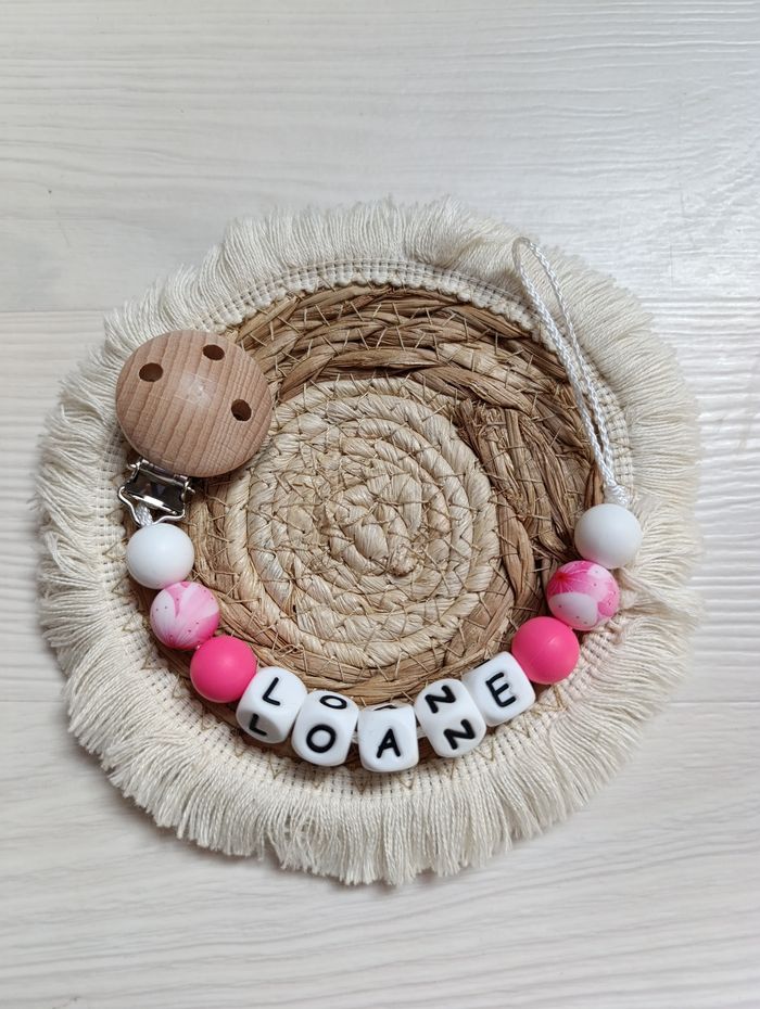 Attache tétine personnalisée Bois naturel et silicone alimentaire Sans BPA ni autres substances toxiques Différents coloris