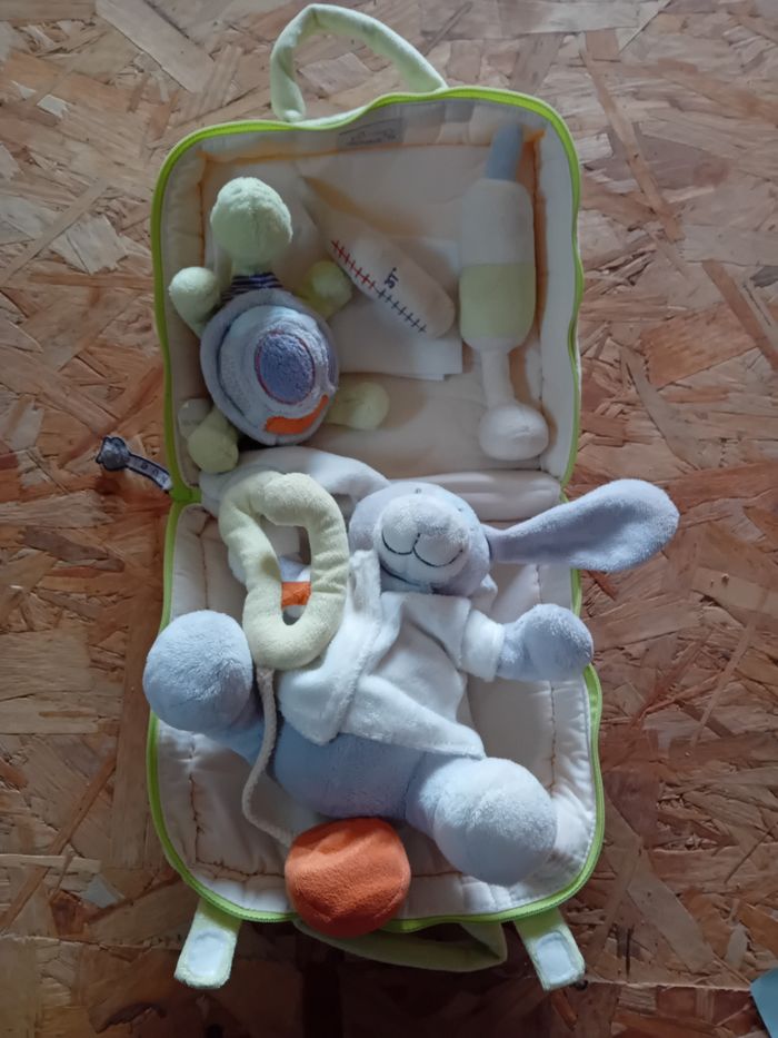 Mallette docteur pour touts petits marque noukies. Docteur lapin et ses ustensiles qui font des bruits doux.