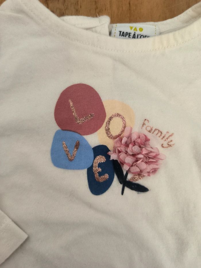 T-shirt crème Tao 9mois 71cm manches longues