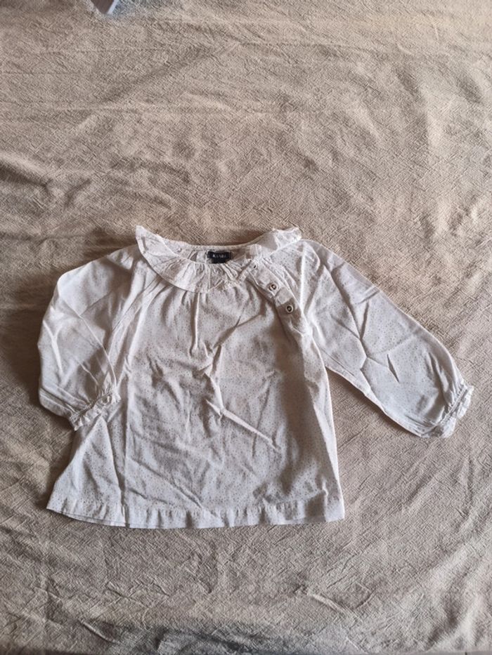 Blouse chemise Kiabi 18mois blanche et paillettes dorées