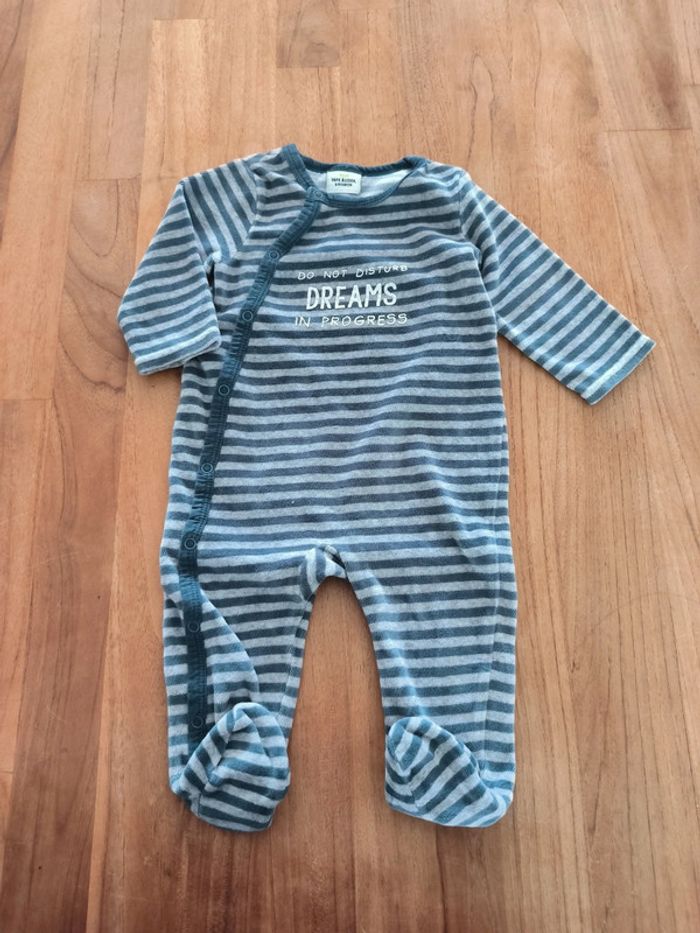 Pyjama en velours Tao 6mois rayé bleu et gris - photo numéro 1