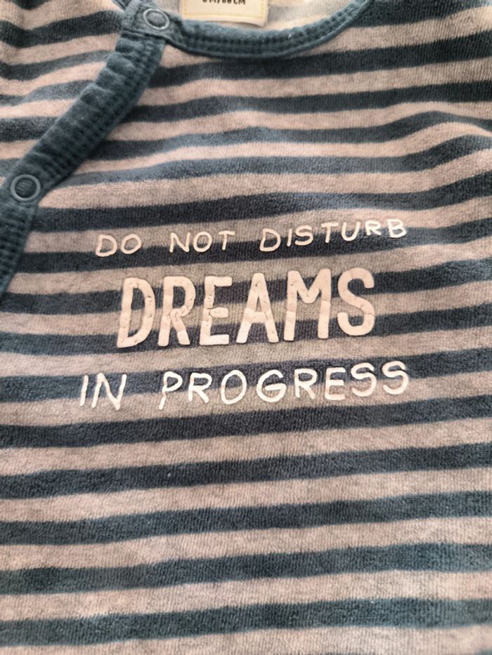 Pyjama en velours Tao 6mois rayé bleu et gris - photo numéro 2