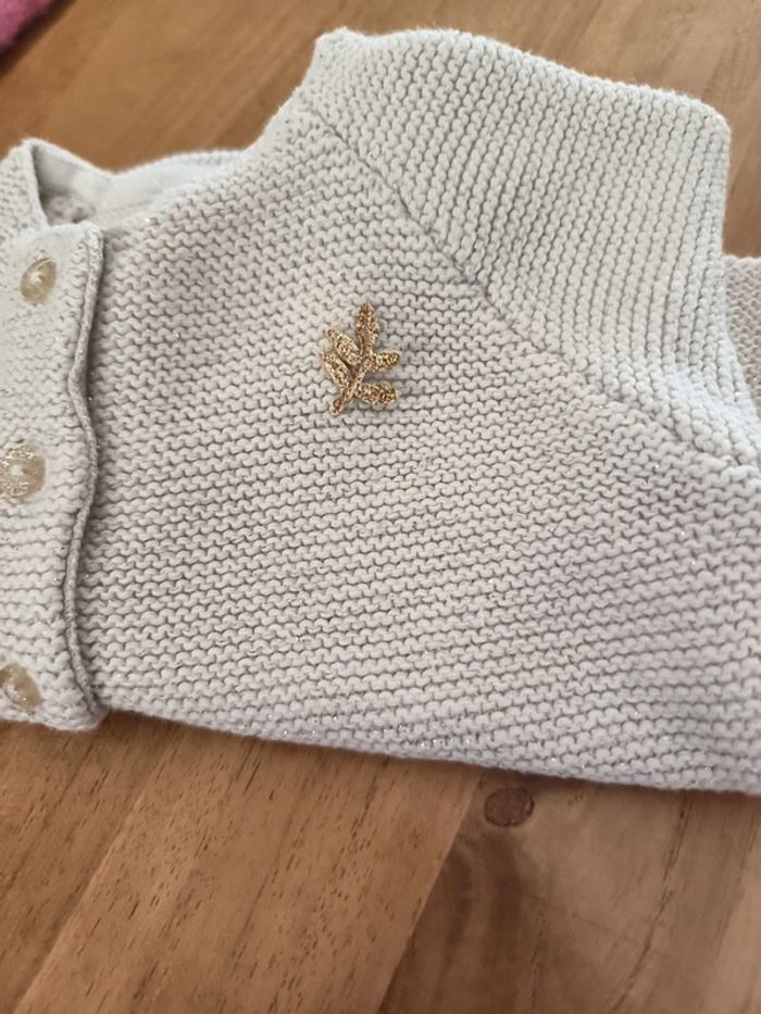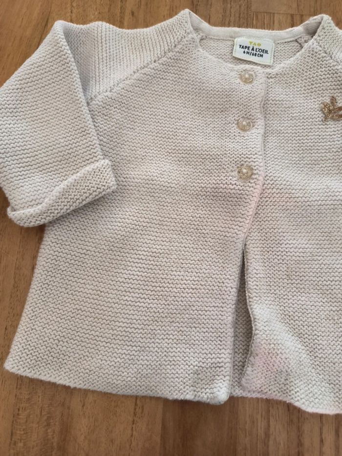 Gilet écru avec paillettes dorées Tao 6mois 68cm