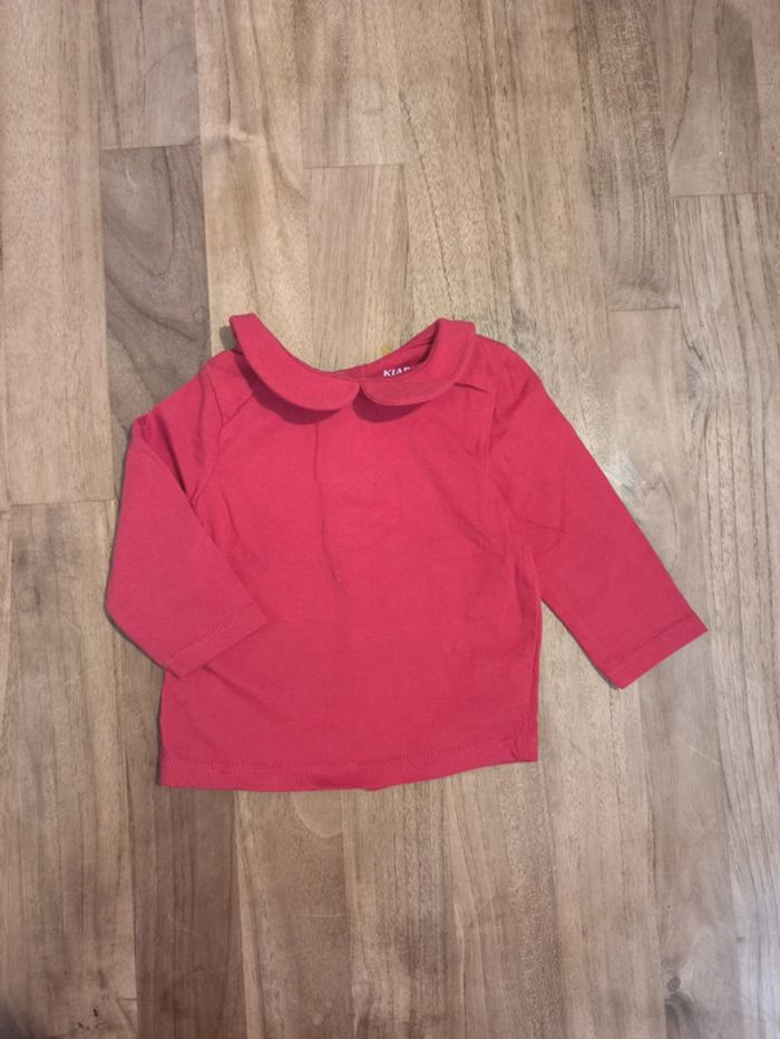 T-shirt manches longues col claudine rouge 3mois Kiabi