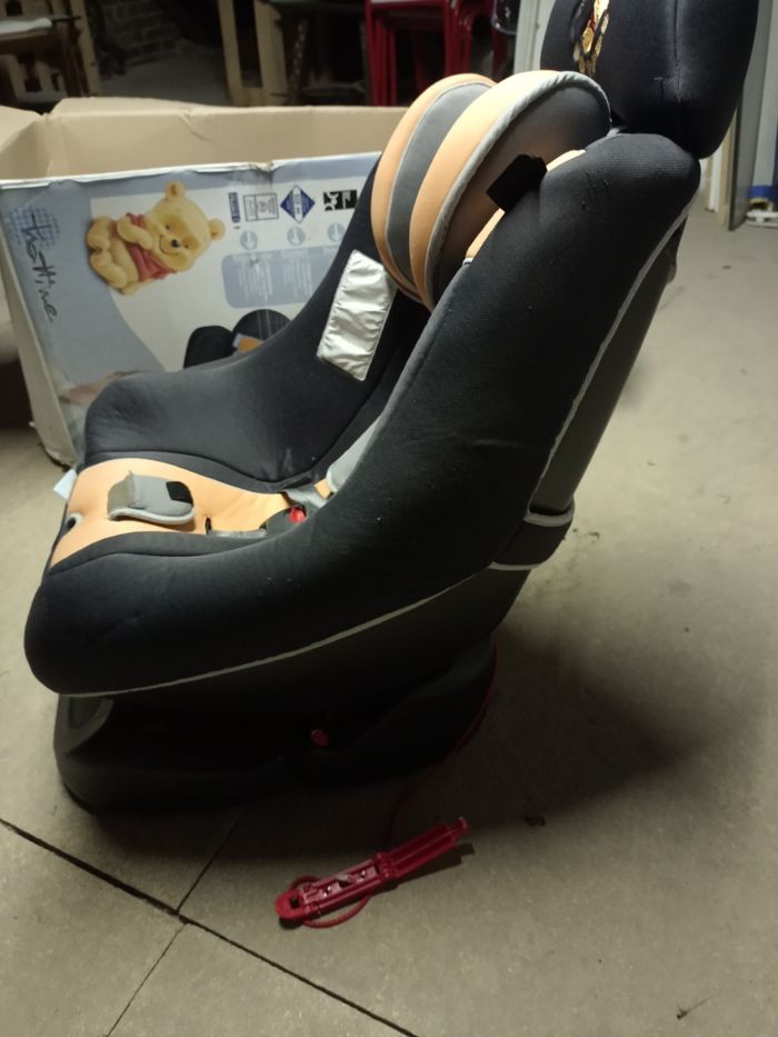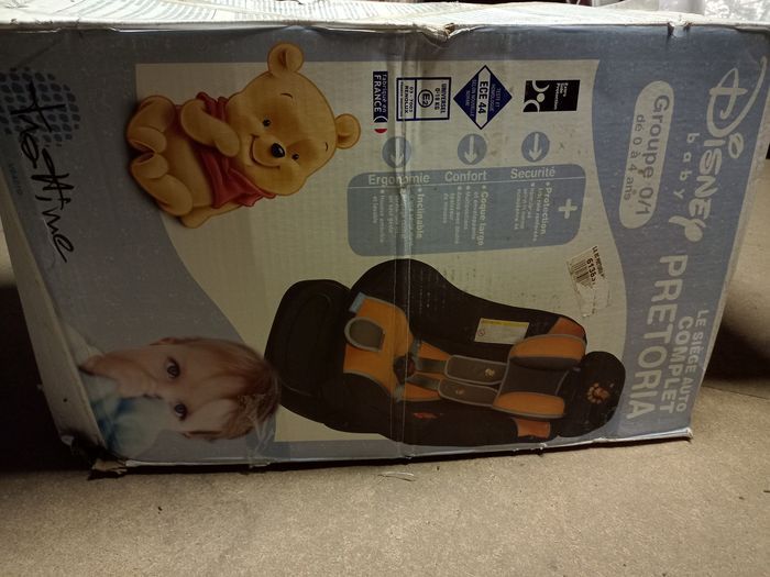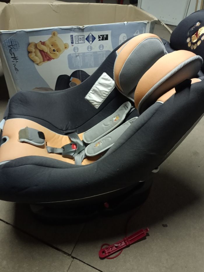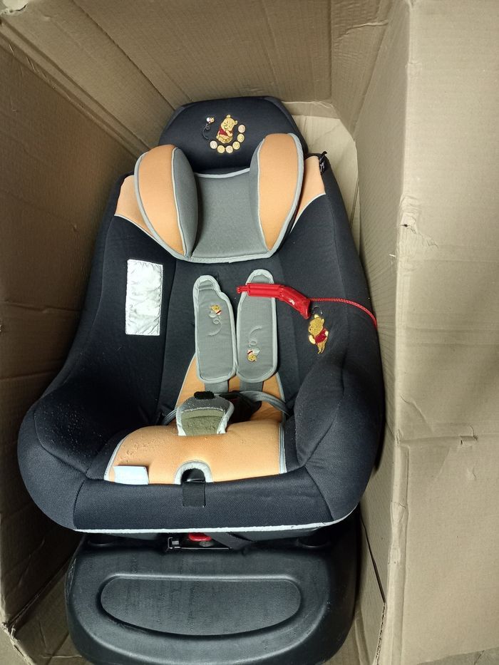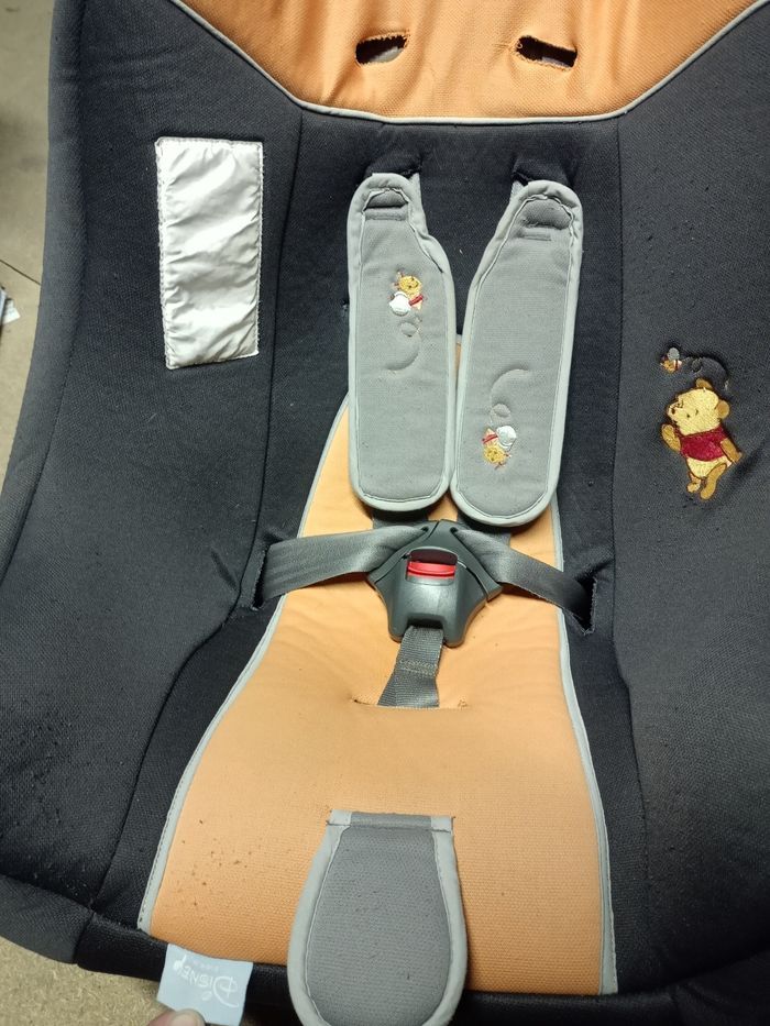 Siège auto complet Winnie l'Ourson Disney Baby Non neuf groupe 0/1 de 0 à 4 ans 0-18kg Trottine Fabriqué en France Extra side protection • Sécurité, protection latérale renforcée • Confort, coque large et enveloppante multipositions, inclinable assise avec double épaisseur de mousse • Sécurité, inclinaison d'une seule main réglage central du harnais en un seul geste housse et cale tête amovible et lavable cale-tête pour les tout-petits, protections latérales pour une grande sécurité. Un peu bouloché