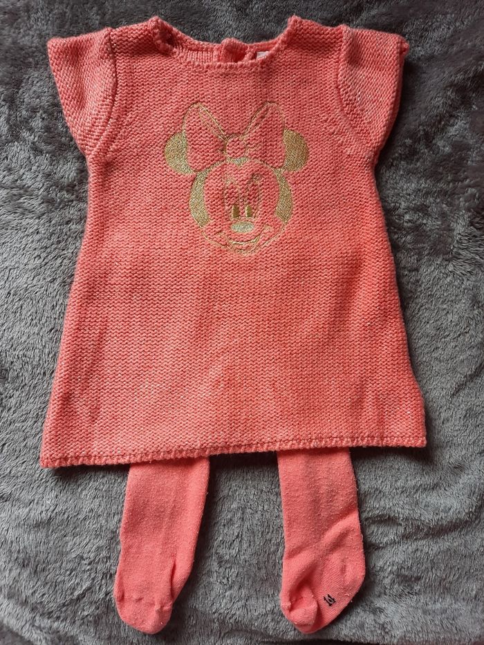 Robe 3mois avec collant corail orange Très bon état minnie disney