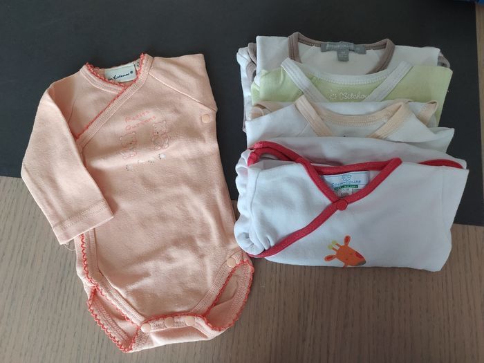 Lot de 5 bodys différentes marques (In extenso, verbaudet, Kitchoun, 3 Suisses, Tex) Ils ont été portés par un seul bébé et restent en bon état Pressions toutes Ok, pas de trous Mon dressing est rangé par taille. Pour voir tous mes vêtements en 1 mois, cliquez sur le lien #celine_yiyi_1m Pour voir l'ensemble des tailles enfant, cliquez sur #celine_yiyi_enfant ATTENTION pour que les liens fonctionnent, pensez à supprimer vos filtres et recherches 😊