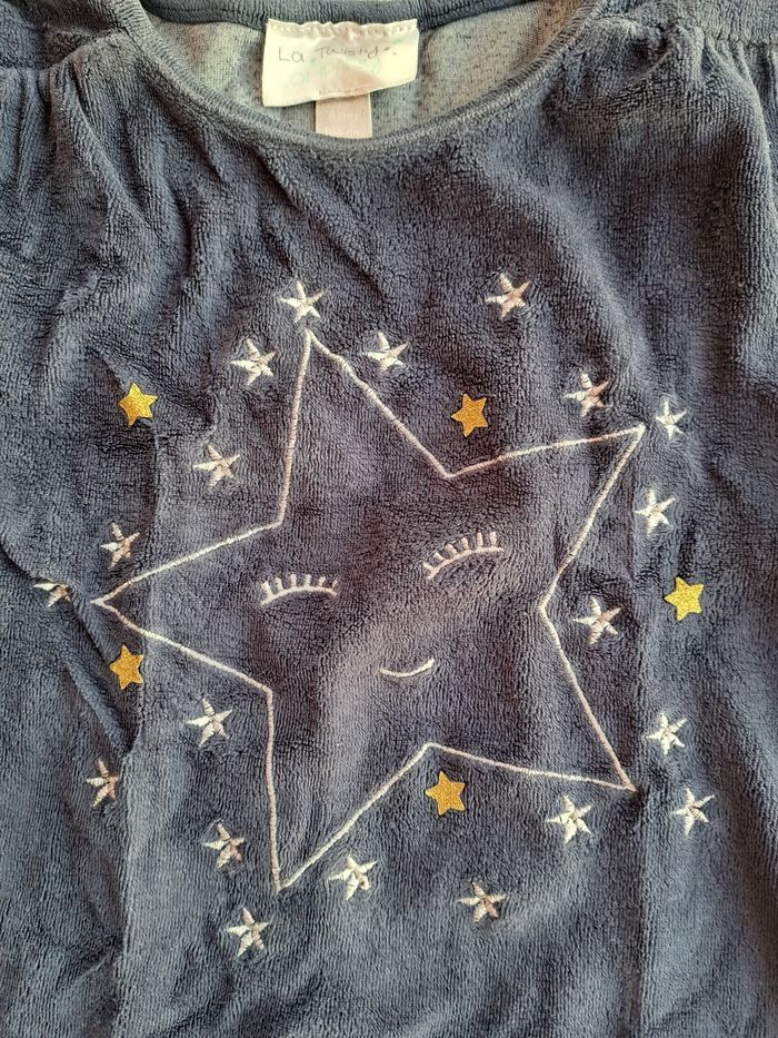 Pyjama Haut du pyjama bleu marine avec une grande étoile et plein d'étoiles autour. Bas du pyjama blanc avec plein d'étoiles sur le pantalon de pyjama. Pas abîmé Taille : 4 ans Marque : la Twisty company