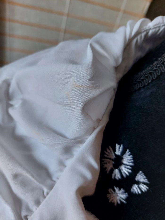 #laetitia8110femmeT48 Longueur aisselle à aisselle 63 cm. Chemise en bon état, juste une légère et discrète petite tâche de fond de teint à l intérieur du col.