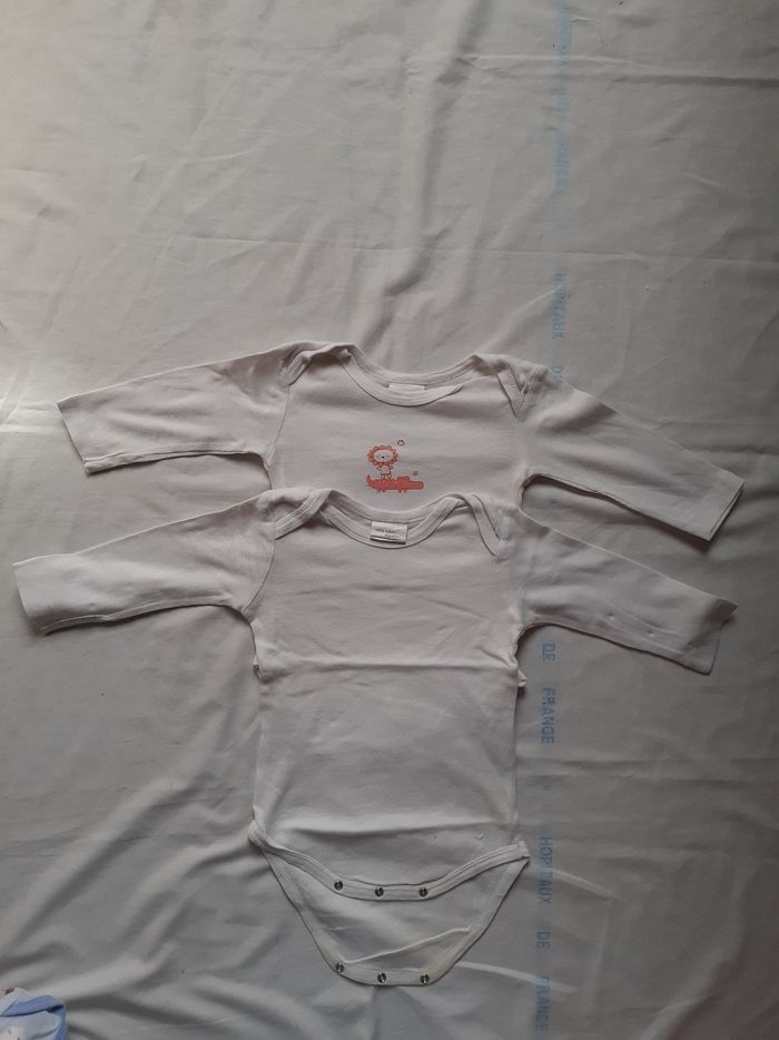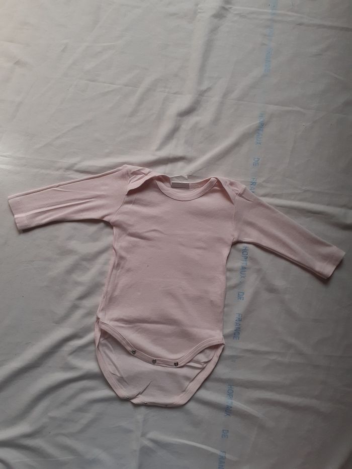 Lot de 3 bodys rose clair et blancs 6 mois ( tache au bas des bodys blancs)