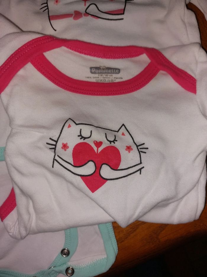 Lot de 7 bodies ML Pommette 3 mois Le rose clair a été porté les autres juste lavés