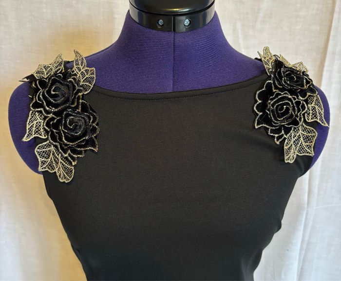 Petit robe noire avec broderie au épaules. Neuve avec étiquette | Taille 34 Les réductions sur les lots sont activées ! Bon shopping 🌸