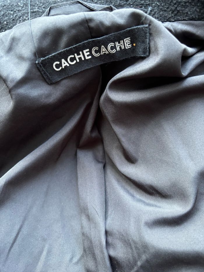Manteau long noir | Cache cache | Taille 36 Étiquette manquante. Petit trou dans la doublure à recoudre, ne se voit pas de l’extérieur. Les réductions sur les lots sont activées ! Bon shopping 🌸