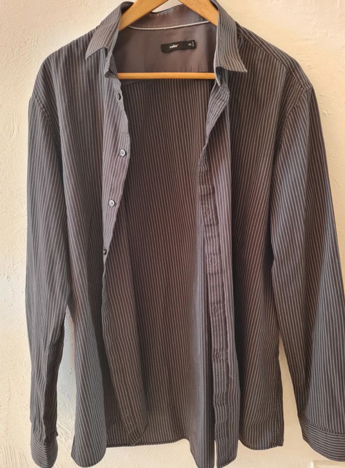 Portée quelques fois, chemise manches longues à rayures blanches. Taille xxl ( 45/46 ) #chemisemancheslongues #chemisehomme #chemisexxl #chemisegrandetaille #chemisecelio #celio #blandine20092020_hommetaillexxl