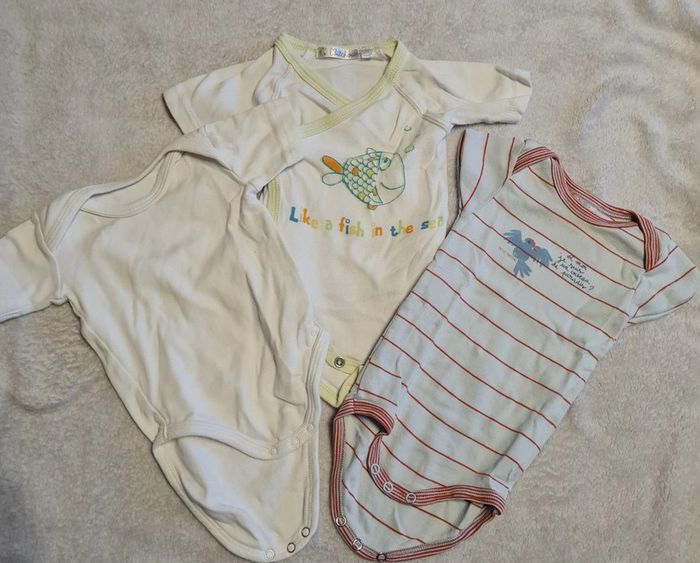 Portés quelques fois - petit bateau 3 mois - kitchenette 3 mois - tex 3 mois 100% coton pour les 3 #bodiesmanchescourtes Manches courtes #bodiesbebegarcon #bodiesbebe #blandine20092020_taille3mois
