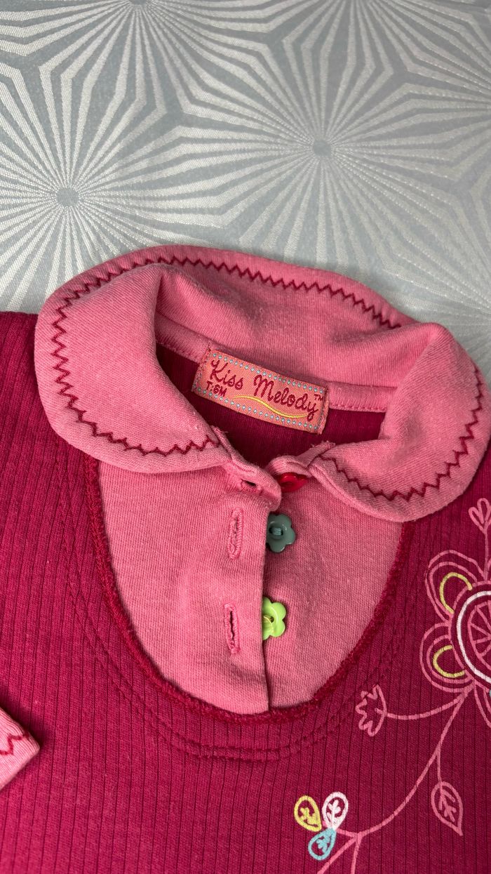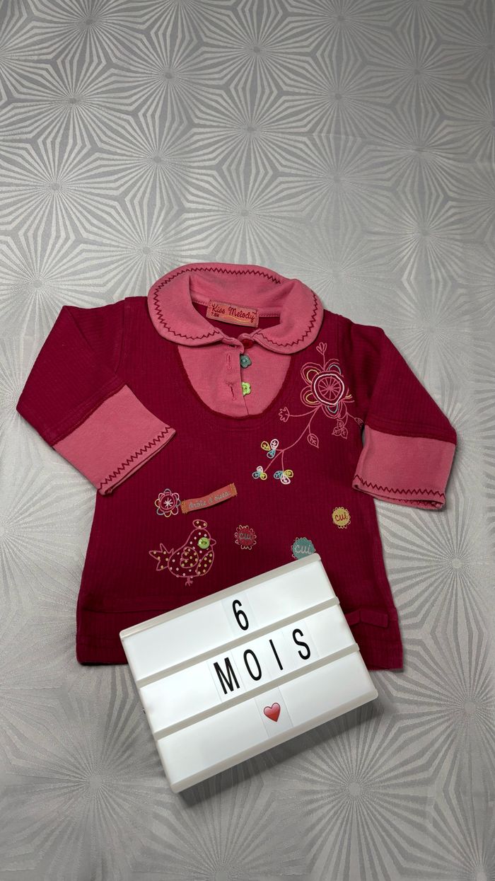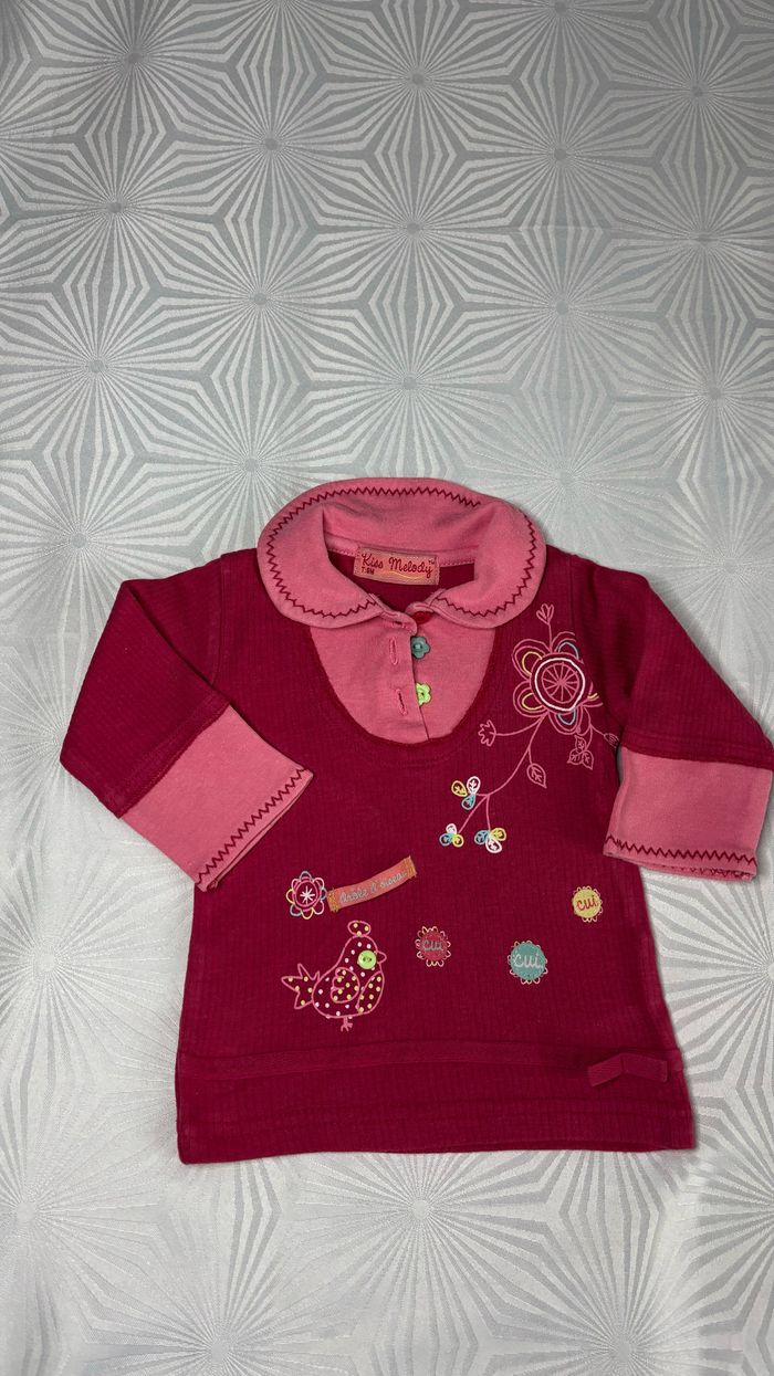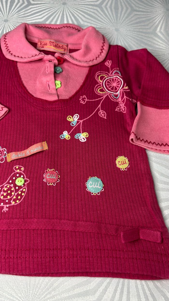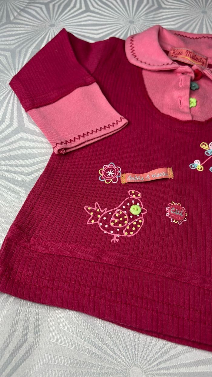 🌺 Pull 🌺 🐧 Taille: 6 mois 🐧 Marque: Kiss Melody 🐧 Couleurs: Rose et fuchsia à motifs fleurs et oiseaux