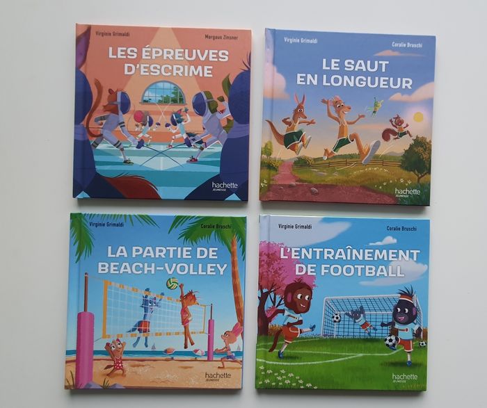 Lot 4 livres "Esprit sportif" Édition Hachette jeunesse - L'entraînement de football - Le saut en longueur - La partie de beach-volley - Les épreuves d'escrime Neufs