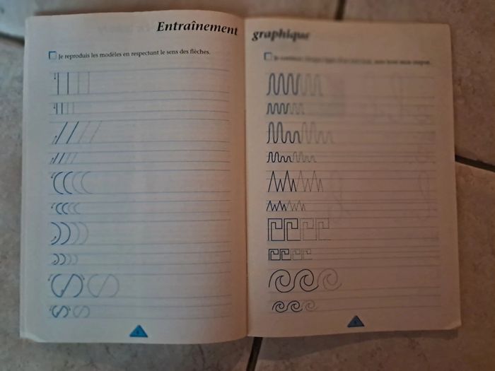 Cahier d'écriture CP 39 pages Attention: - pages jaunies - sur la première page, un prénom et un nom sont écrits, je les masquerai donc avec du correcteur avant de vous envoyer le cahier