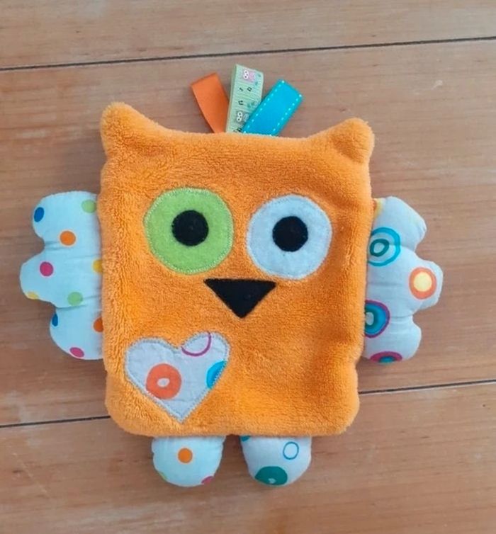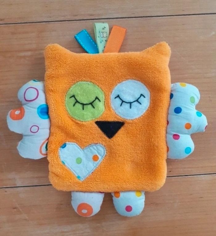 Doudou plat hibou tissu et éponge fait main - photo numéro 1