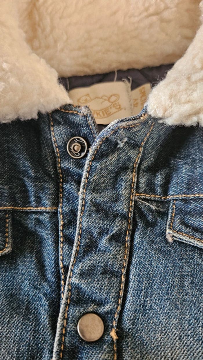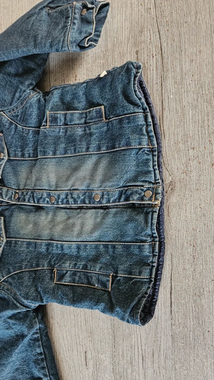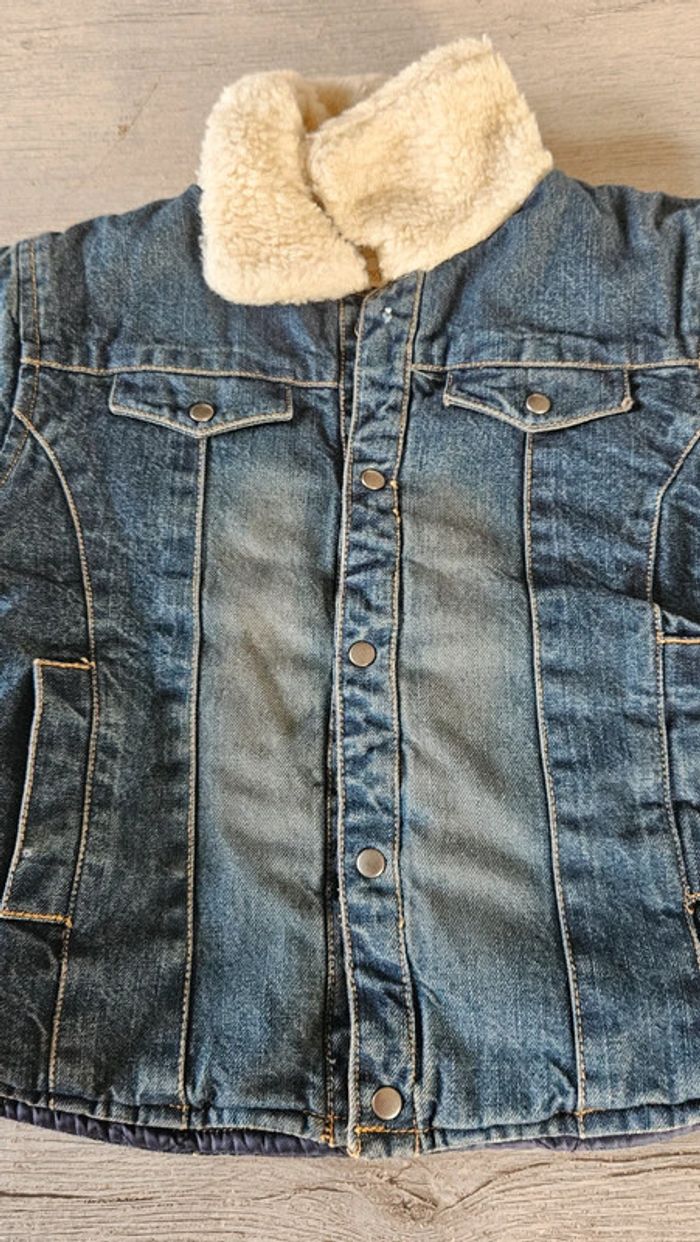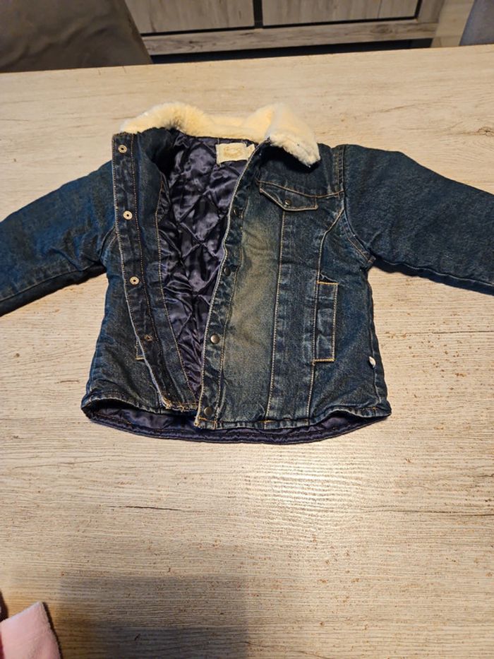 Jolie veste en jean s doublée matelassee. Elle est de taille 4 ans mais convient pour du 3 à 4 ans. Elle n a jamais été mise, ma fille n aimait pas. Poches sur le coté. Se ferme par des pressions. Achetée 30 € Attention : défaut d origine que je n ai pas vu en achetant : il manque la pression du dessus, au col. Le col en fourure n est pas détachable #deborahtock_3ans #deborahtock_4ans