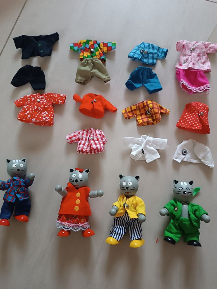 Poupée chat en bois + vêtements - photo numéro 1