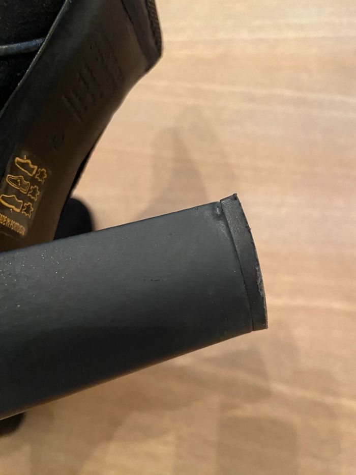 Semelles neuves refaites chez un artisan cordonnier. Talons 8 cm, un tout petit défaut invisible bottines portées sur le bas d’un des talons. Cambrure confortable, très élégantes, en très bon état.