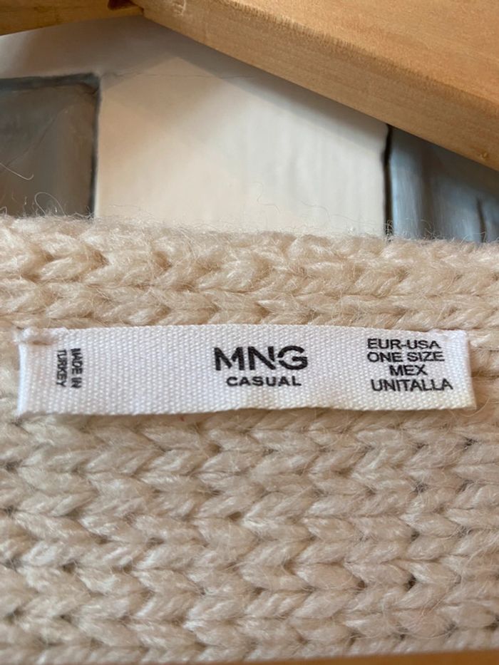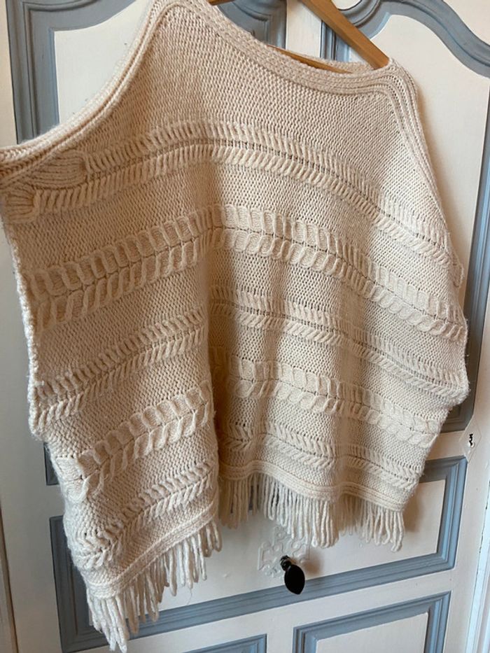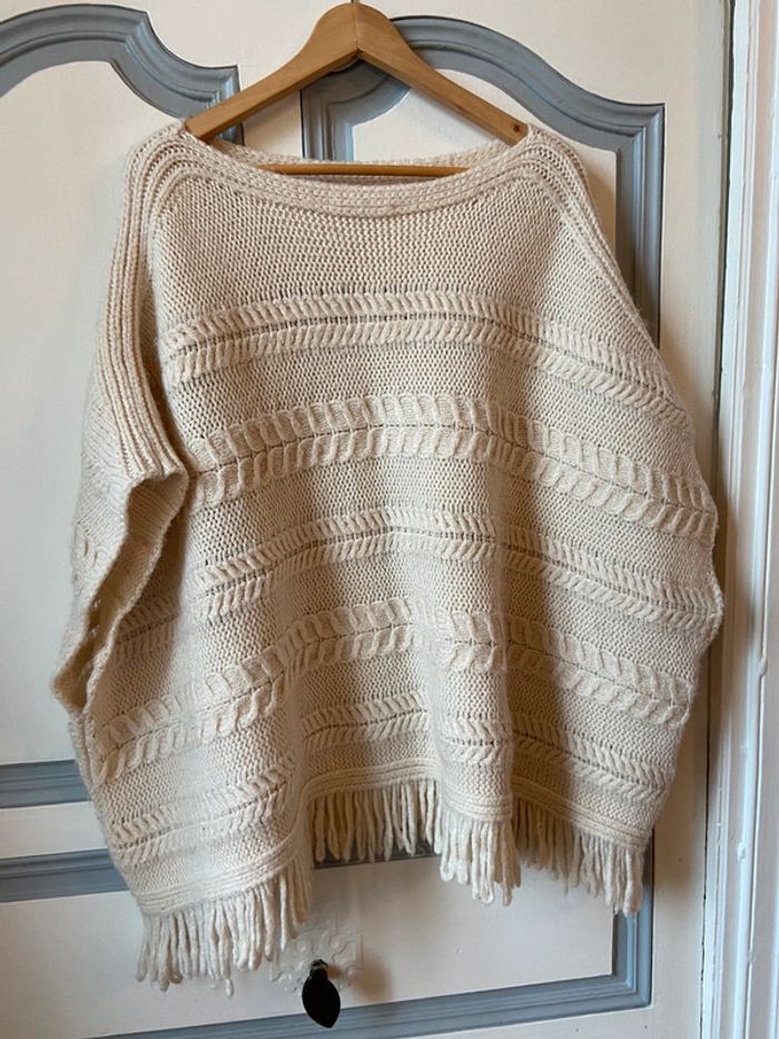 Poncho à franges maille torsadée crème Mango taille unique - photo numéro 1