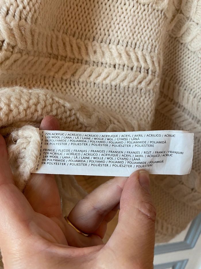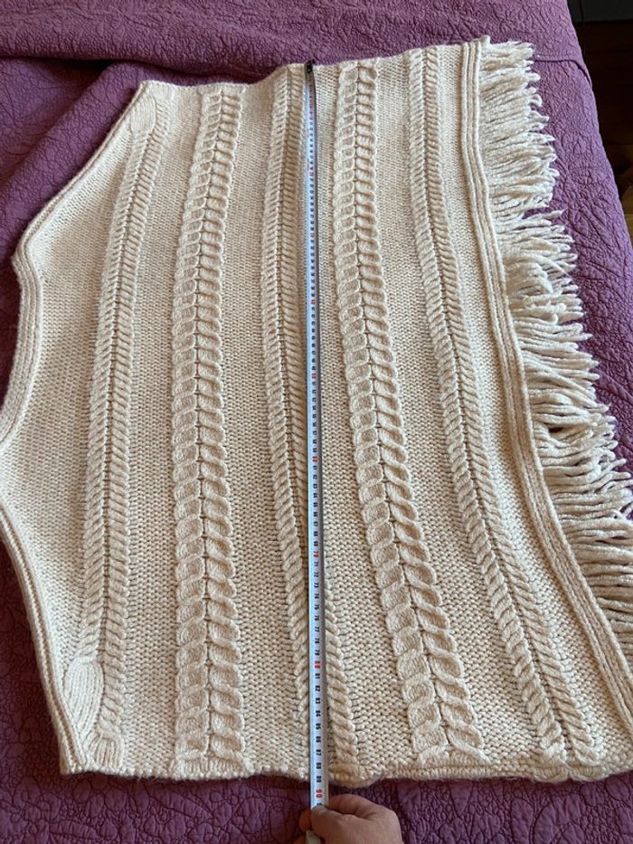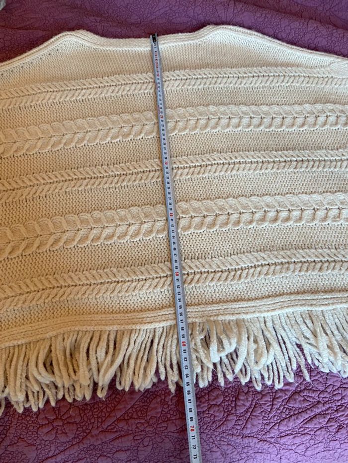 Poncho à franges maille torsadée crème Mango taille unique - photo numéro 10