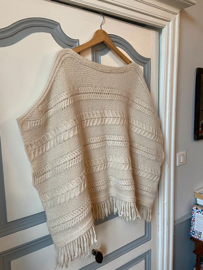 Poncho à franges maille torsadée crème Mango taille unique - photo numéro 8
