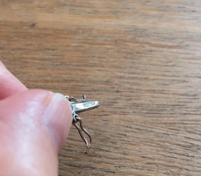 État neuf, porté une fois. Zoom fait sur les poinçons. Superbe qualité, fermoir solide. Je n’ai malheureusement plus la facture d’achat. La qualité des pierres est parfaite, belle brillance et transparence.