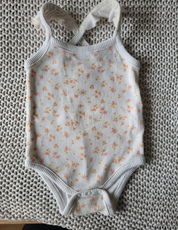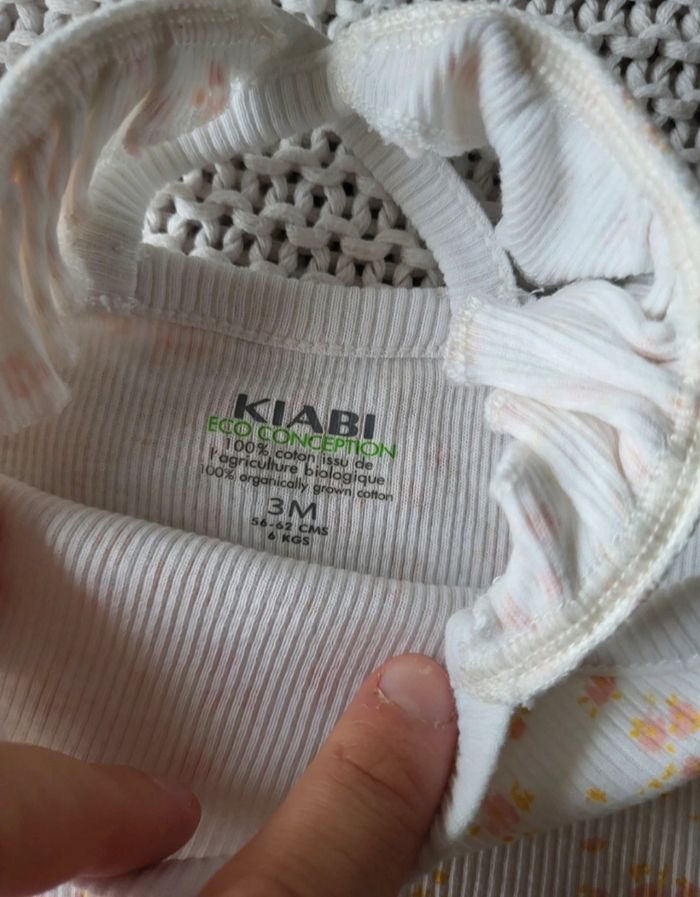 💥 Lot de 3 Bodies manches courtes 👉 Taille 3M (56-62cm) ❤️ Bodie 1 : 👉 Bodies en coton à bretelles et volants de la marque KIABI 👉 Couleur blanc avec imprimé motif floral orange et rose. ❤️ Bodie 2 : 👉 Bodies en coton avec boutons pressions avant de la marque PETIT BATEAU 👉 Blanc avec col brodé et manches courtes bouffantes. ❤️ Bodie 3 : 👉 Bodies en coton avec emmanchures américaines de la marque TEX BABY 👉 Couleur : Blanc avec petits motifs lettres roses ( B A B Y ) ⚠️ Très peu porté (enfant handicapé ne se déplace pas et n'abîme pas) ÉTAT : Très bon état ❤️ COMME NEUF ✅️ Réduction pour achat en lot 🫶