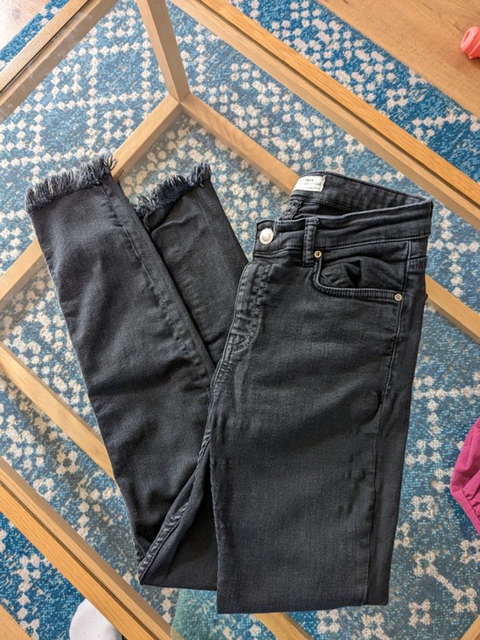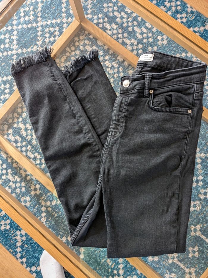 Jean skinny de marque zara tbe taille 36 Avec détails effilochés au niveau du bas de jambe idéal pour le printemps-été.