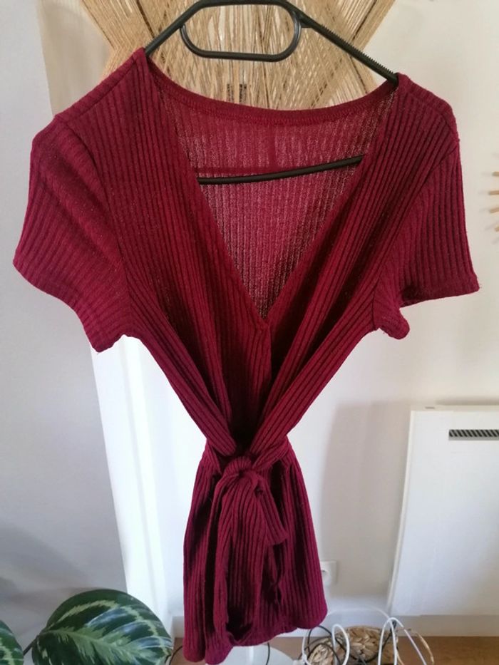 Combishort couleur bordeaux avec ceinture à nouer