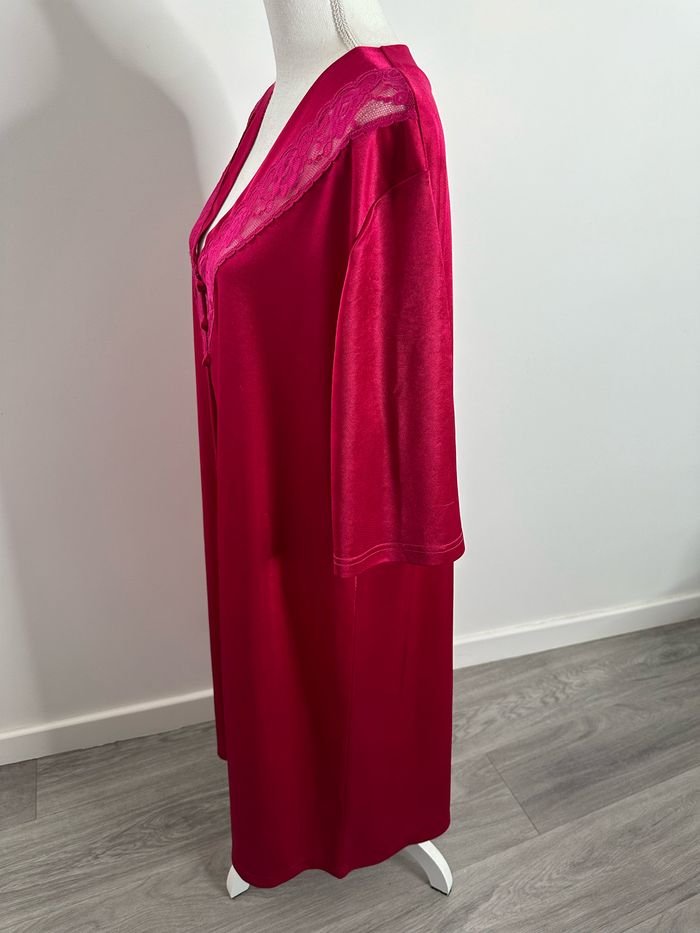 Kimono long nuisette satin et dentelle rose fuchsia Vintage TU - photo numéro 6