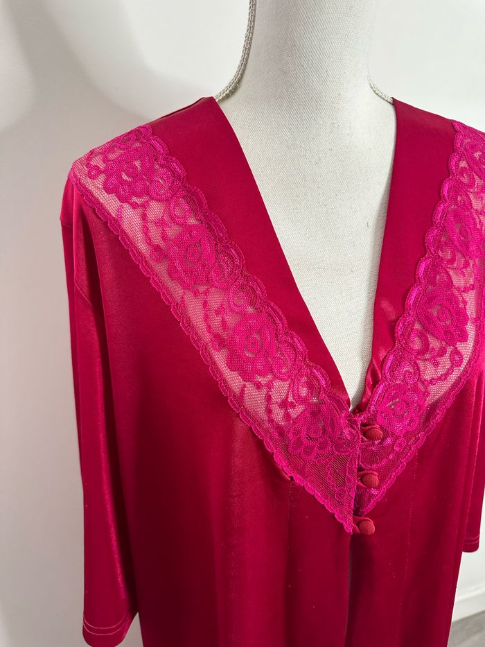 Kimono long nuisette satin et dentelle rose fuchsia Vintage TU - photo numéro 5
