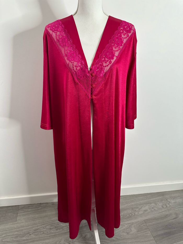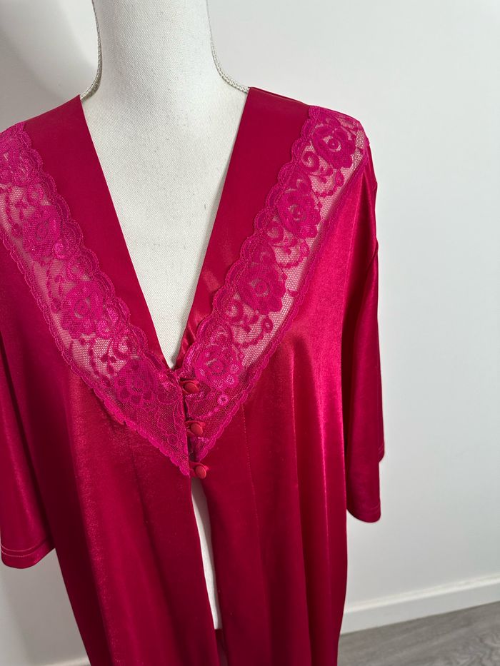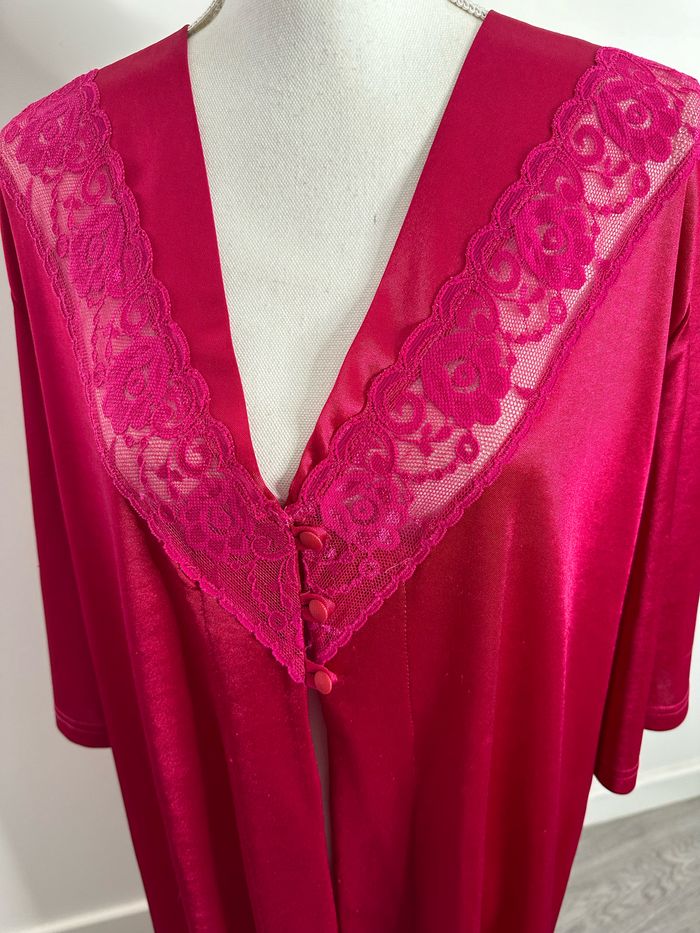 Kimono long nuisette satin et dentelle rose fuchsia Vintage TU - photo numéro 2
