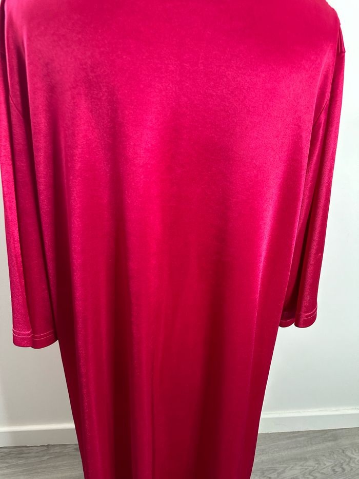 Kimono long nuisette satin et dentelle rose fuchsia Vintage TU - photo numéro 4