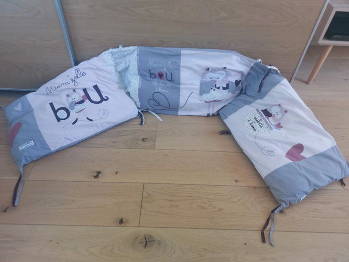 Je vends un tour de lit de la marque Sauthon baby déco. C'est le modèle Mam'zelle Bou. S'adapte à des lits à barreaux de 120x60 ou 140x70. Le tour de lit est déhoussable. Il est dans un très bon état. Il est juste passé en machine plusieurs fois. Vendu dans sa housse en plastique d'origine. #liloupinette_bébé