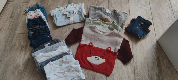 Lot 6 mois comprenant : 6 bodys 4 pulls 1 tee shirt ML 1 gilet 4 pantalons 1 ensemble tee shirt + short 1 ensemble salopette + tee shirt Diverses marques : Sergent major, Disney baby .. Le tout en très bon état. Certains articles très peu voire pas porté. #petitprix #lotbebegarçon