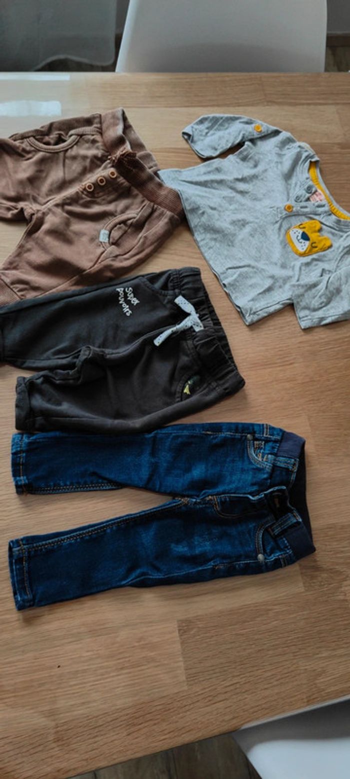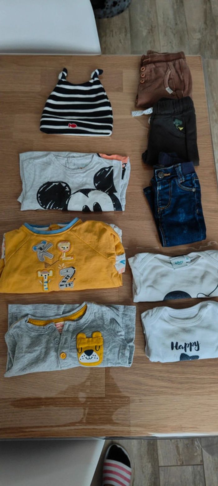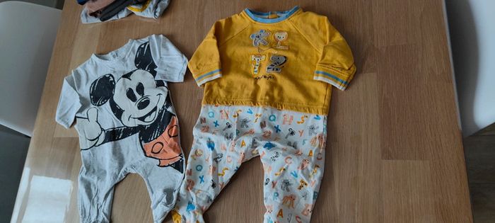 2 pyjamas 1 haut ML 3 pantalons 2 bodys 1 bonnet Diverses marques : Sergent major, TAO ... Prix du lot 9 euros Me contacter pour prix au détail #petitprix #lotvetementsbebe