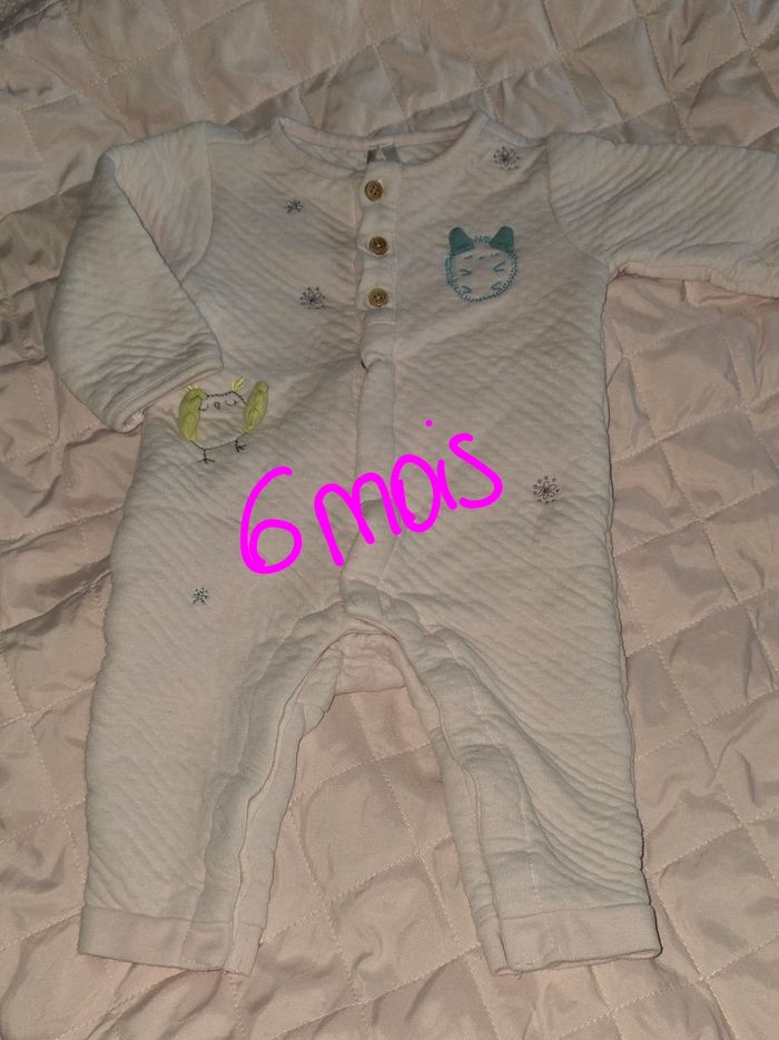 Je vends un jolie pyjama en très bon état, de la marque Orchestra 6 mois. Tout le devant est à bouton de pressionavec bouton le haut du pyjamas. Grenouillère sans pied. Finition très jolie et impeccable avec des jolies petits motifs.