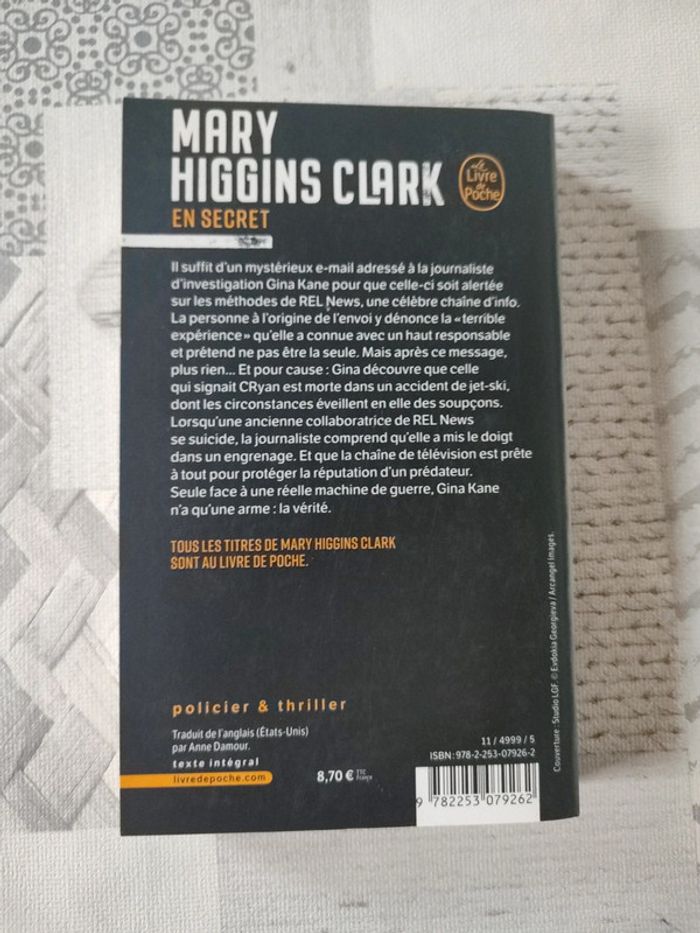 Livre En secret de Mary Higgins Clark très bon état. Prix Neuf 8.70€