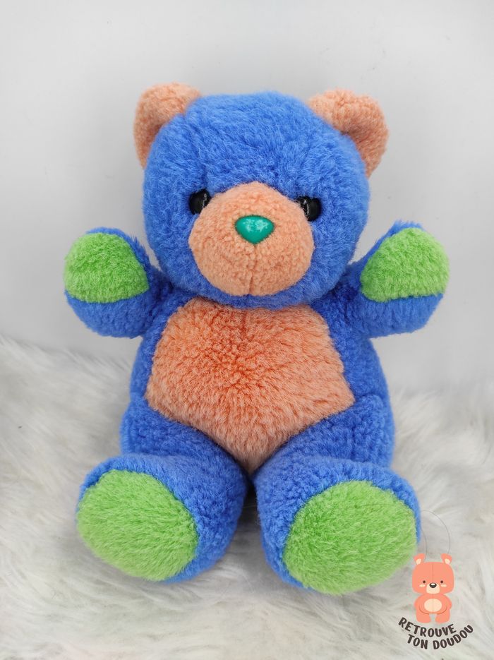 Peluche Ours Bleu Orange et Vert Vintage - photo numéro 1