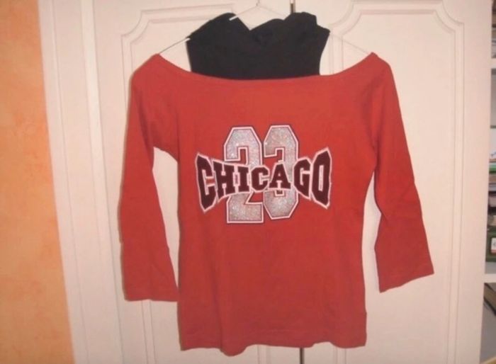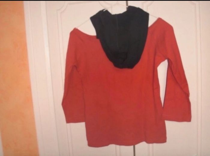 T-Shirt rouge manche 3/4 avec capuche noir taille 1