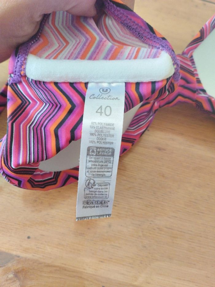 Haut de maillot de bain. Neuf 2 possibilité de le porter. Avec ou sans lien autour du cou. Le bas assortie vendu séparément taille 44