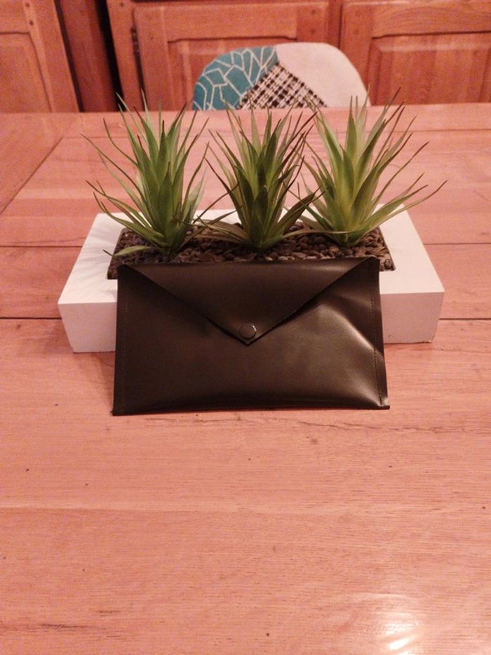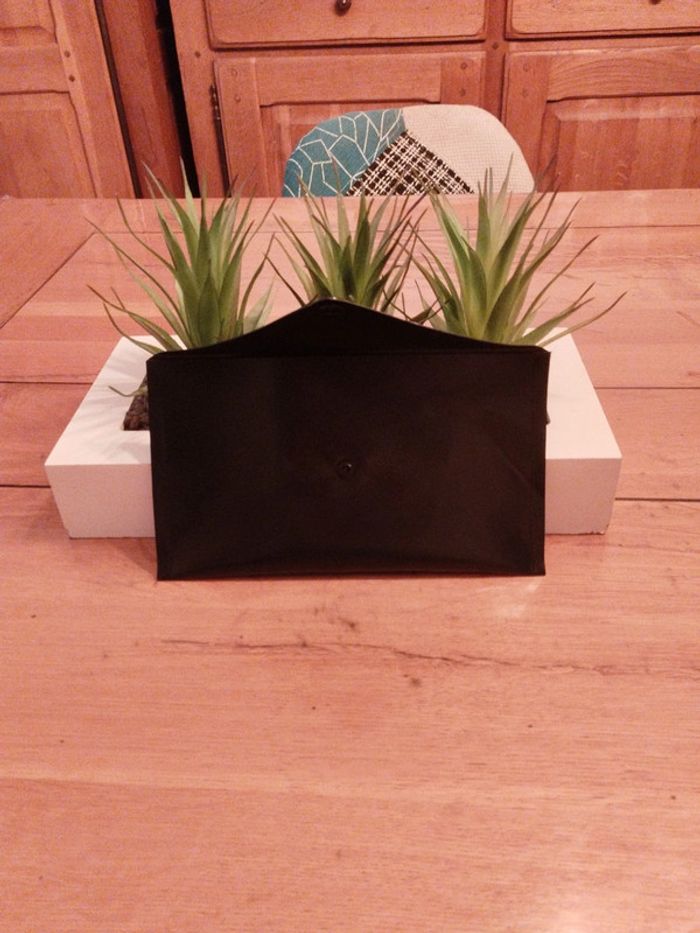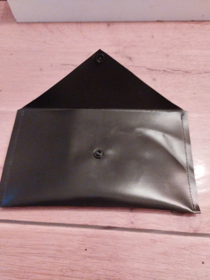 Pochette en très bon état Fermeture par boutons pressions Longueur :20 cm Hauteur : 11,5 cm Matière : vinyle/ pvc Multi usages